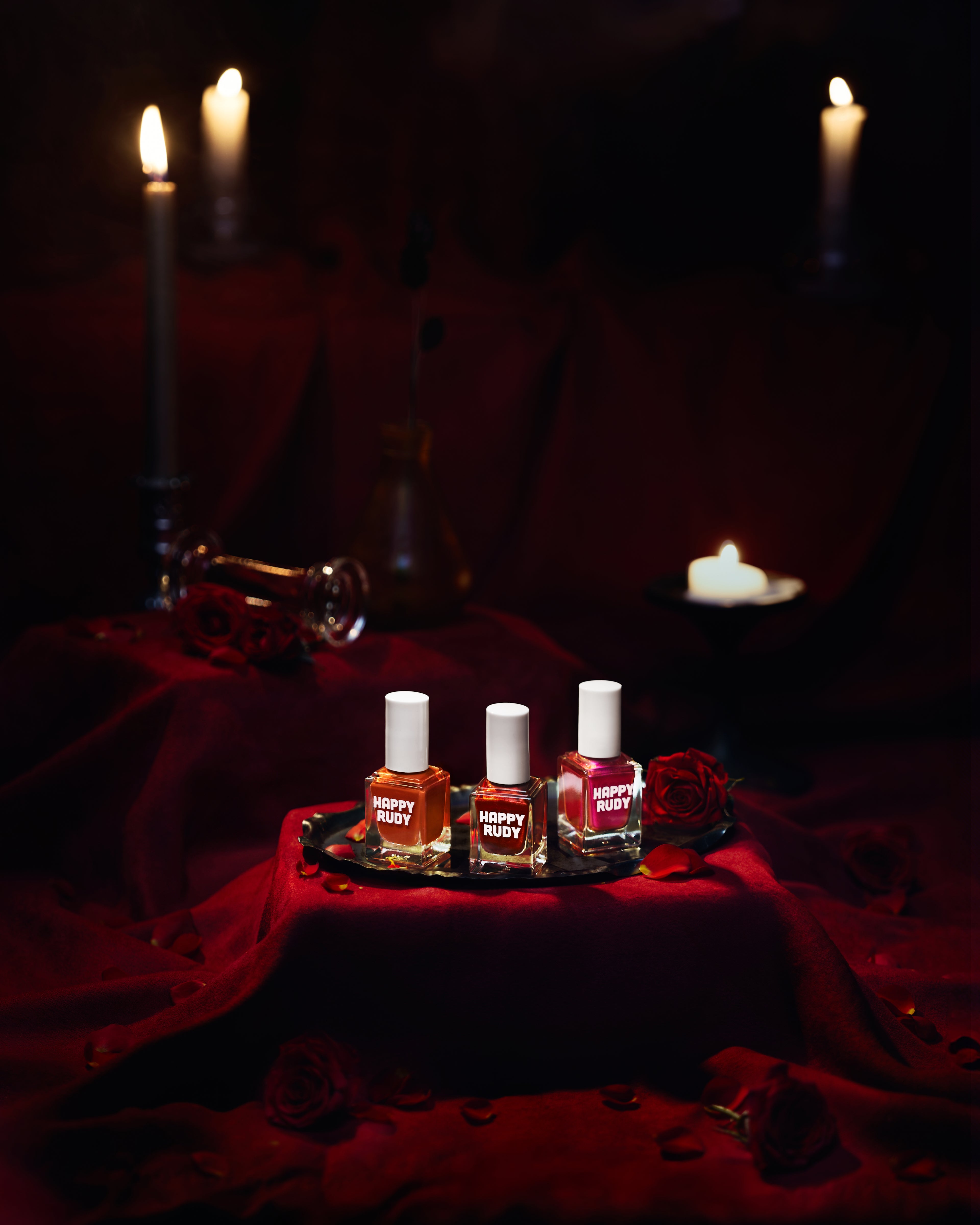 INSPIRED BY ANTIQUE TRAYS, VELVET REDS, AND SEPIA-TONED PHOTOGRAPHS, THESE THREE SHADES BRING INTIMACY AND ALLURE TO YOUR FINGERTIPS. EACH BOTTLE IS A LOVE LETTER TO ROMANCE: FLEETING, TENDER, AND UNFORGETTABLE.