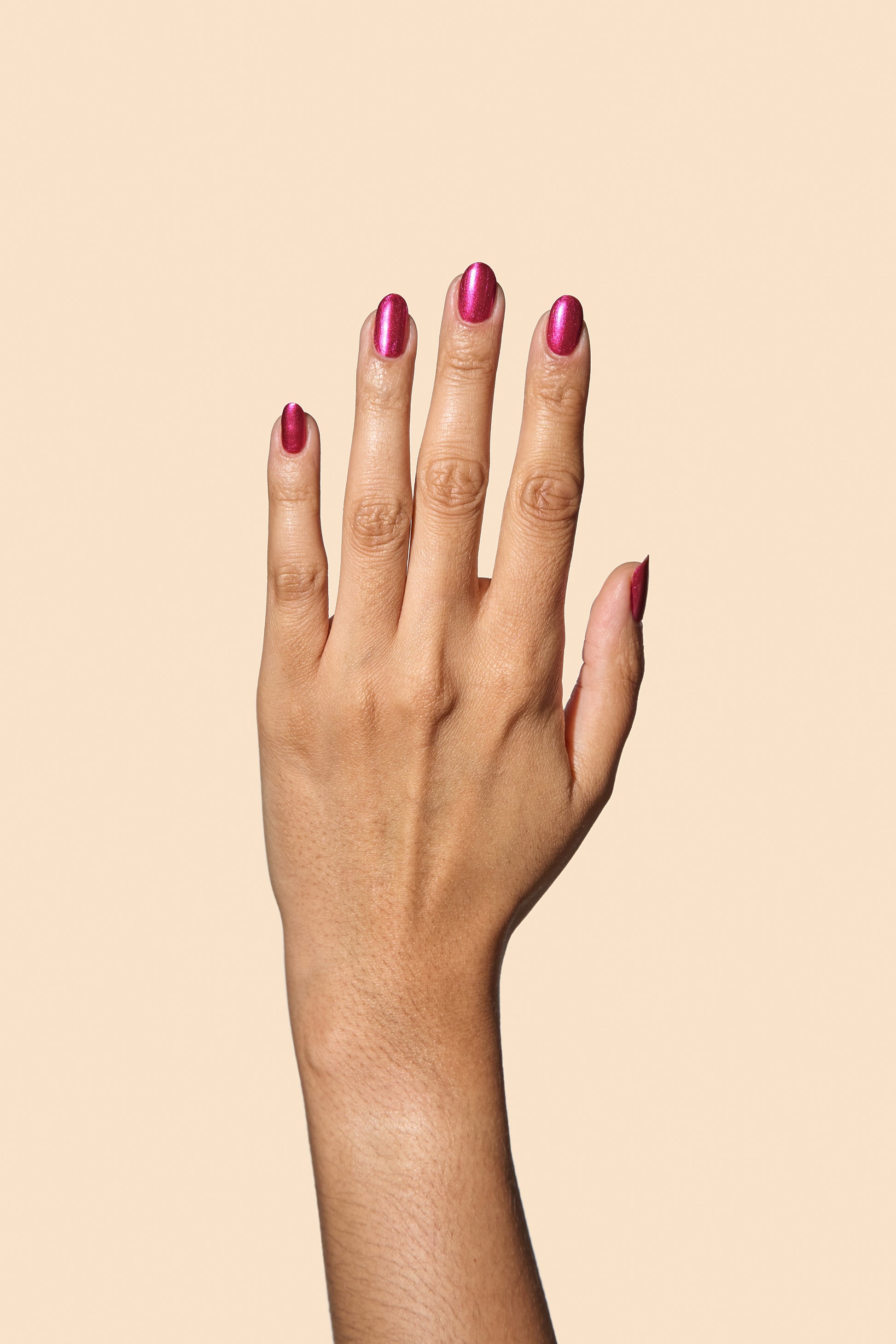 Unexpected sparks, polished to perfection. Stolen Kiss is a pink chrome that shines like antique trays under soft light. It’s the shade for quick glances across the room, whispered secrets, and that unforgettable thrill of something just out of reach.
